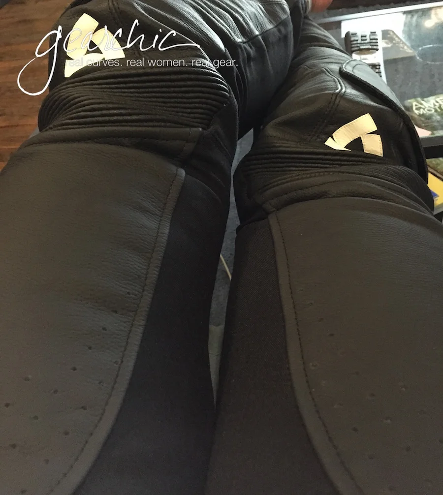 I love wearing my gear tight, as fitted as possible. I hate anything baggy or loose on my body. That’s actually part of the reason why I bought these. My Gear 2’s are simply too curvy for my table booty and non existent hips. (One way you can determine this subtract the difference in inches from your hip to waist/butt measurements. If the number is more than 10”, you may have trouble getting these to fit over your hips so you'll definitely want to size up!). These have a pretty straight cut, nothing like the Alpinestars Stella Missile track leather pants which are more curvy. I’d say they feel fit a lot like Dainese pants, but it’s been a really long time since I’ve worn Dainese leathers. Based on their 1 piece womens race suit fitments, I’d say Dainese is a slimmer option than these. (The women’s 1-piece suits tend to run 1 size small in the hips, so order up a size).